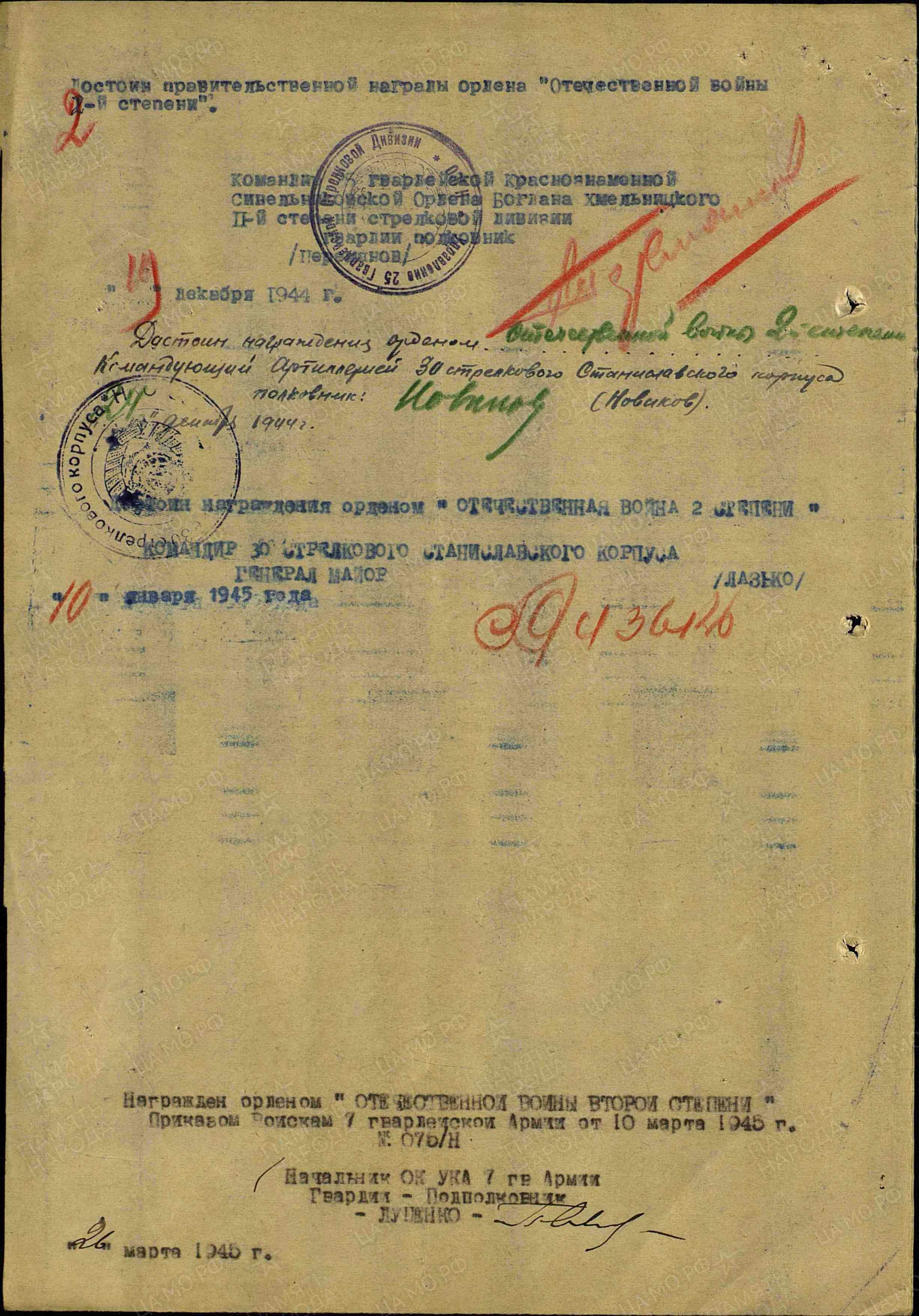 …Орденом «Отечественной войны» второй степени я был награжден в 1944 году.
