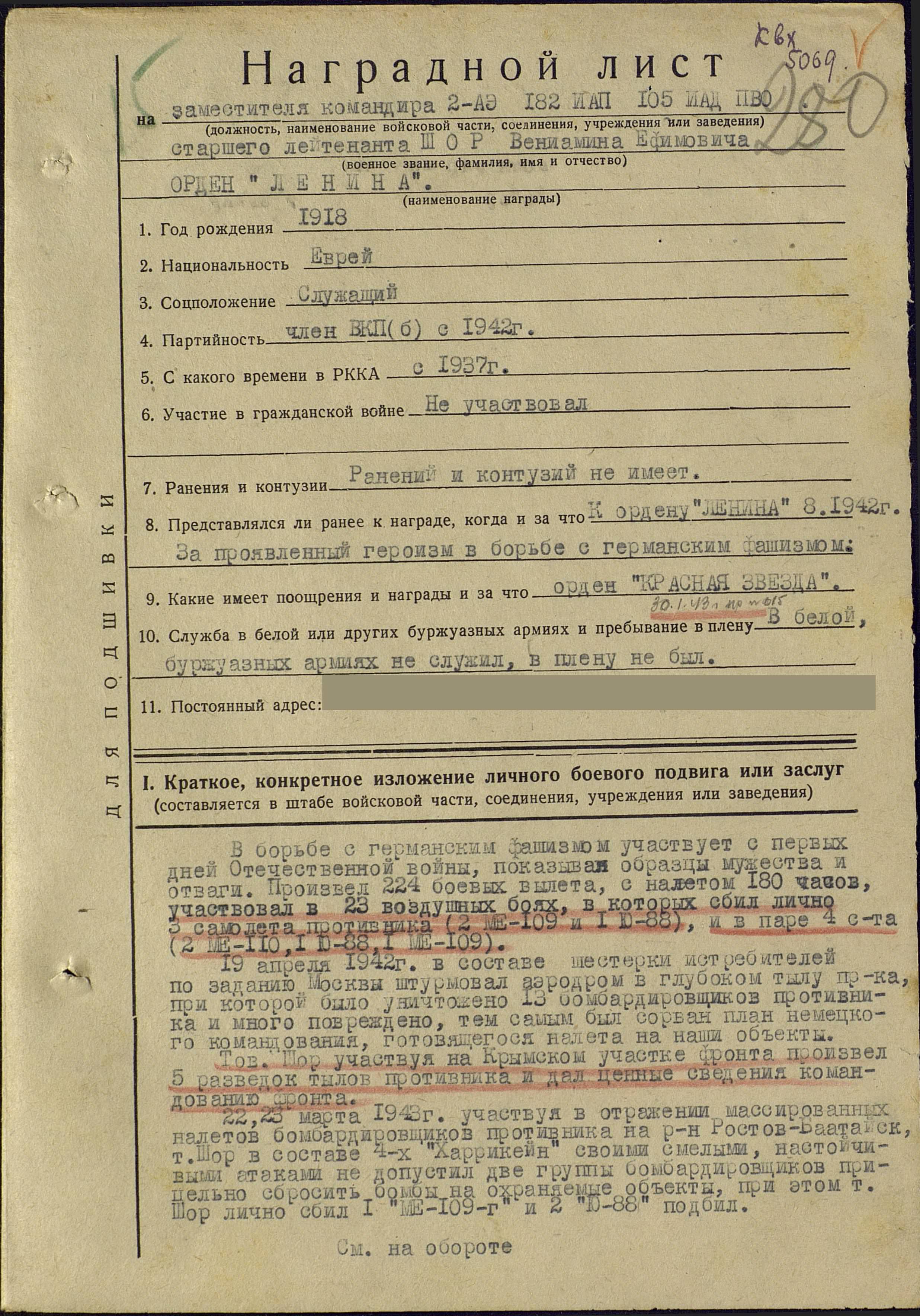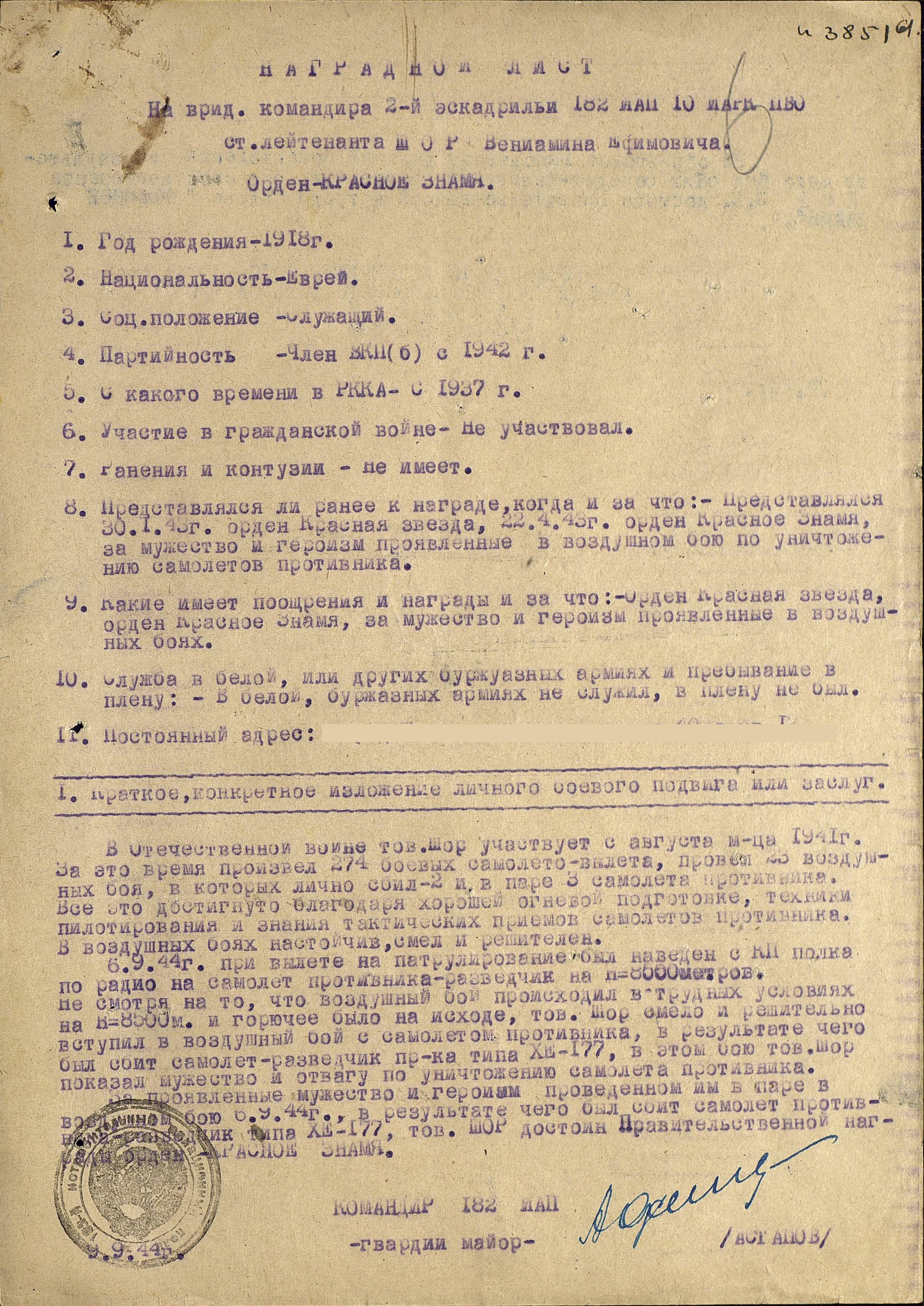 Все четыре долгих года Великой Отечественной отважный летчик был на передовой. Закончил войну Вениамин Ефимович командиром эскадрильи, капитаном, кавалером Ордена Боевого Красного знамени, ордена Отечественная война, трех орденов Красная Звезда и множества боевых медалей. За период Великой Отечественной на его счету было 312 боевых вылетов, 4 лично сбитых и 8 сбитых в групповых боях самолетов.