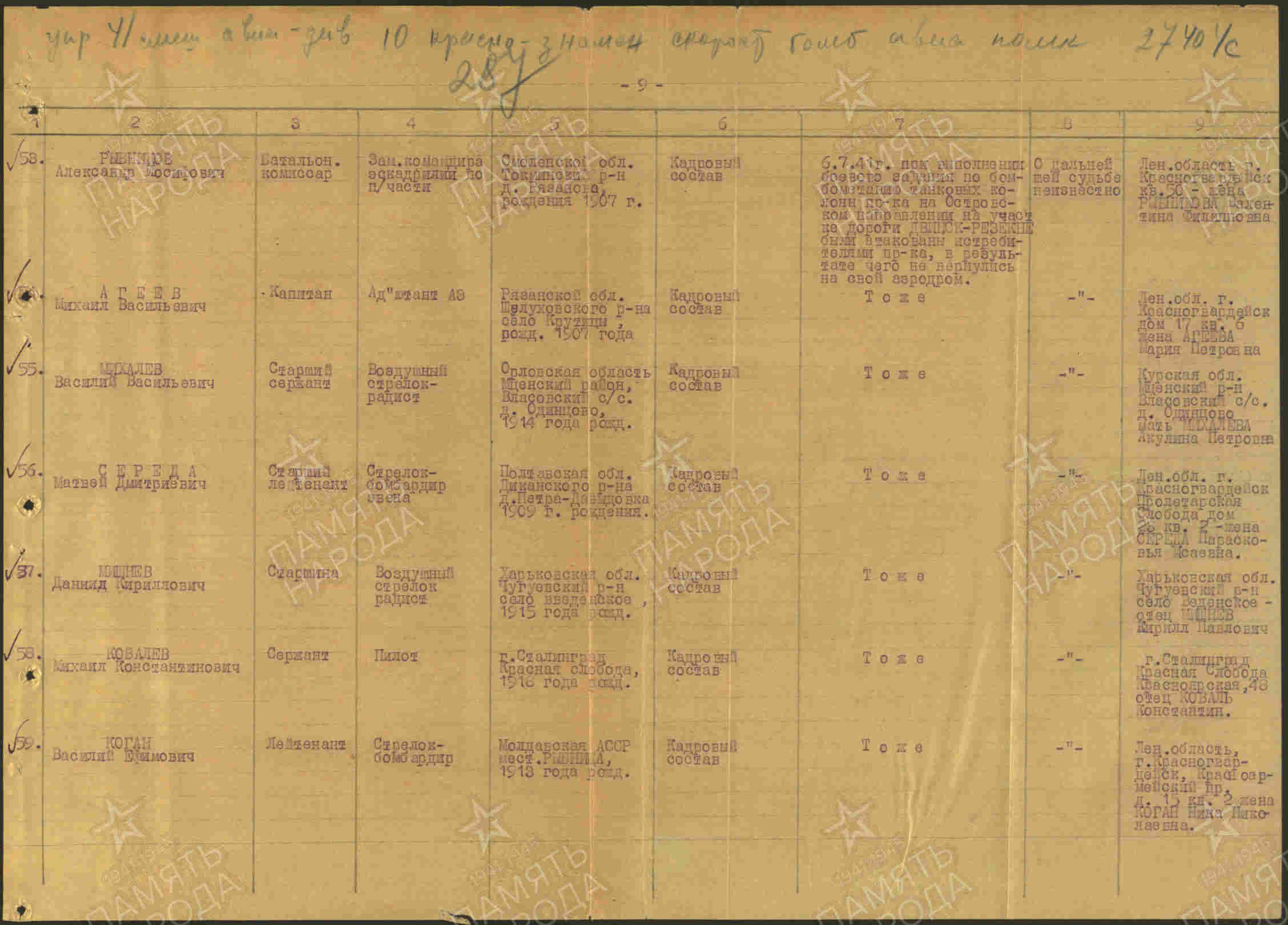 Данные из УПК (учётно - послужной карты, портал "ПАМЯТЬ НАРОДА").