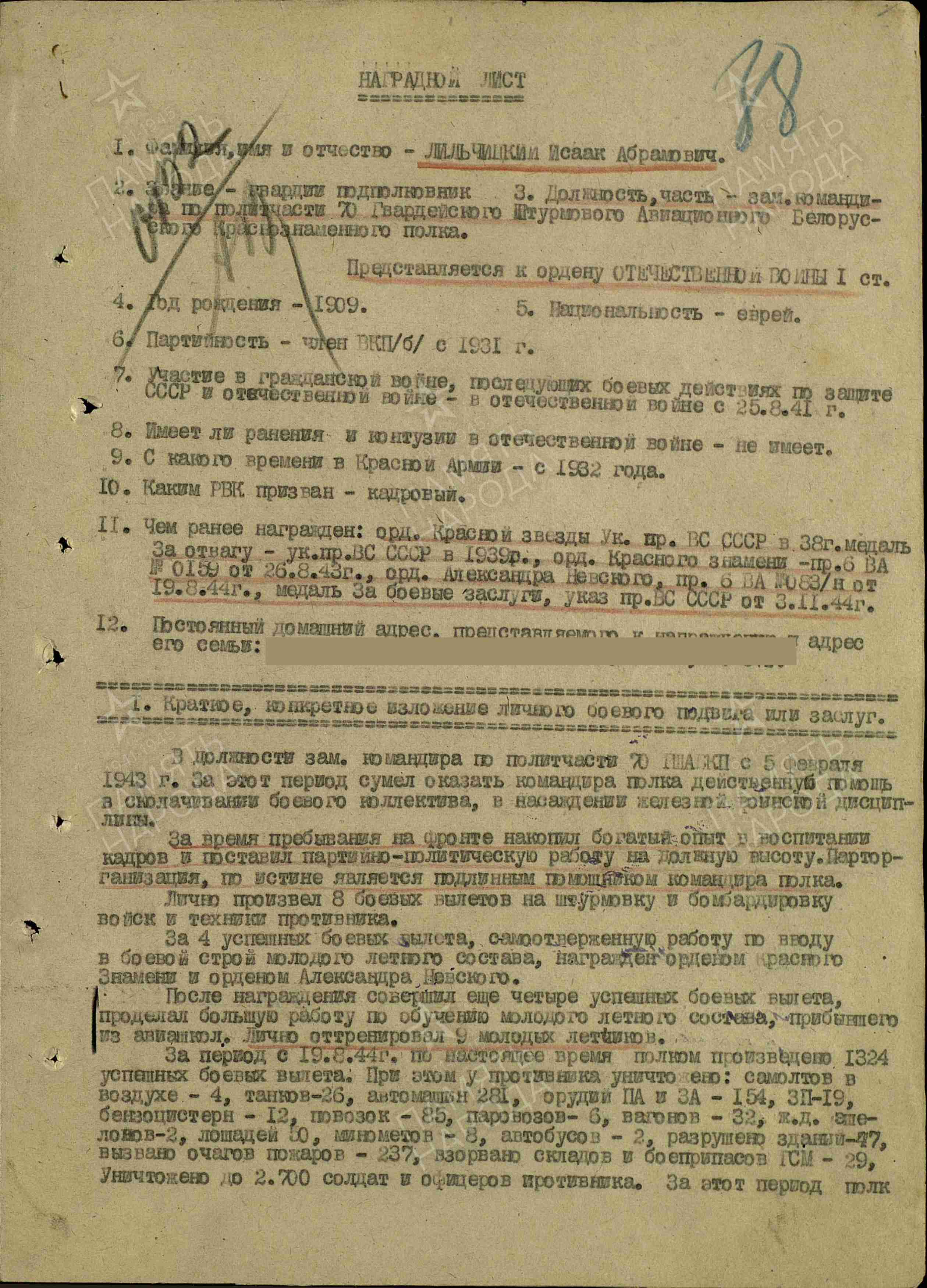 ЛИЧНАЯ СТРАНИЦА на гвардии подполковника ЛЕЛЬЧИЦКОГО И. А.: