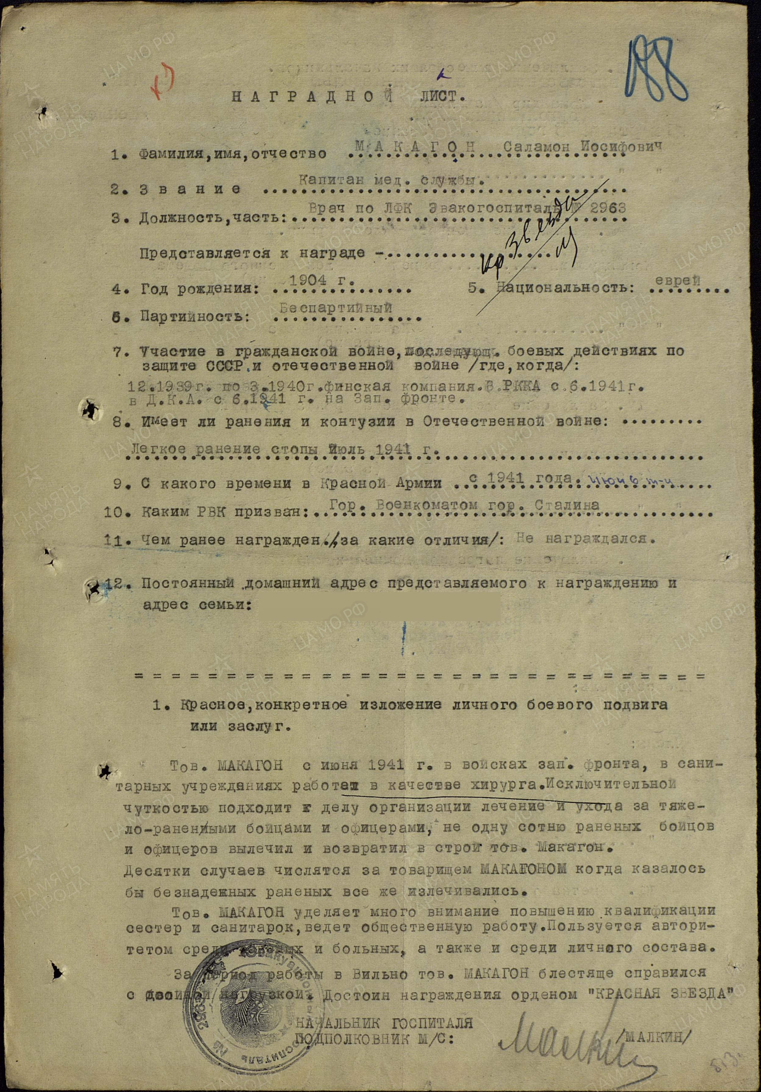 1941,авг.-1943г-нач. хирургического отд.и ведущий хирург ЭГ №4844,