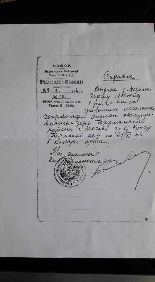 Материалы к биографии, в т.ч. документы и фотографии, предоставлены внучкой Гирша Львовича - Анной Медалье.
