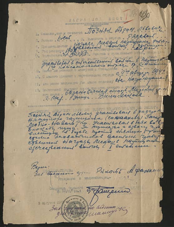 Медали: "ПАРТИЗАНУ ОТЕЧЕСТВЕННОЙ ВОЙНЫ" 1-Й СТЕПЕНИ, "ЗА ПОБЕДУ НАД ГЕРМАНИЕЙ В ВЕЛИКОЙ ОТЕЧЕСТВЕННОЙ ВОЙНЕ 1941 - 1945 ГГ." и другие.