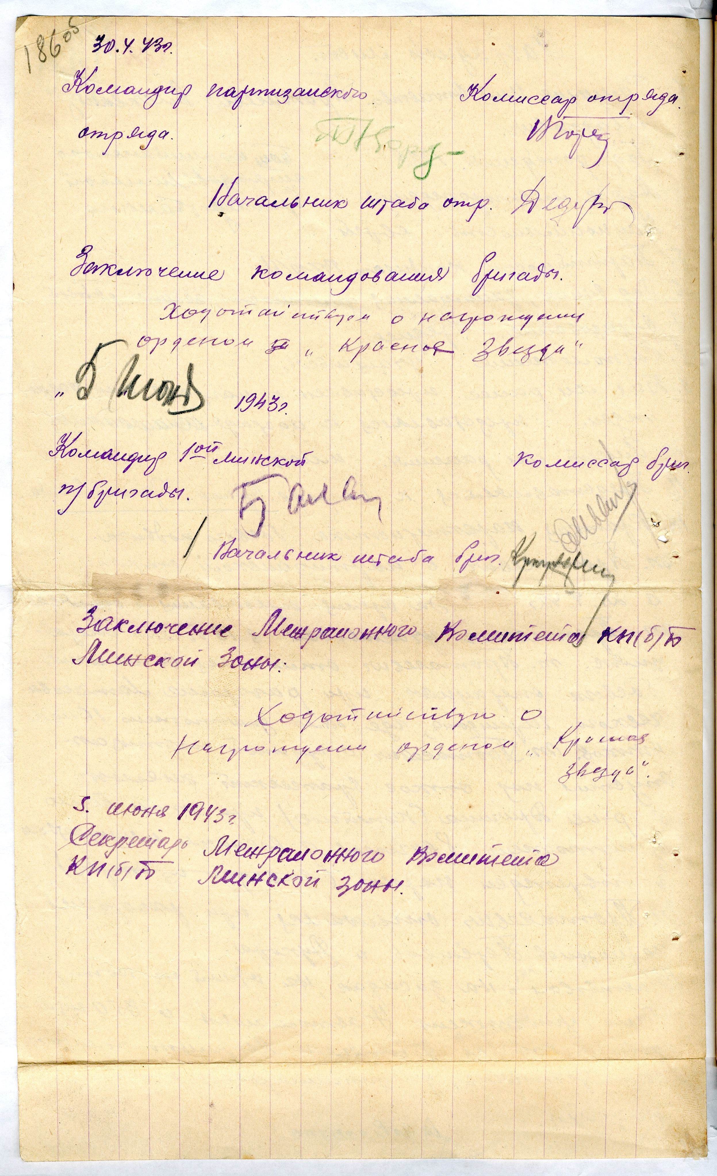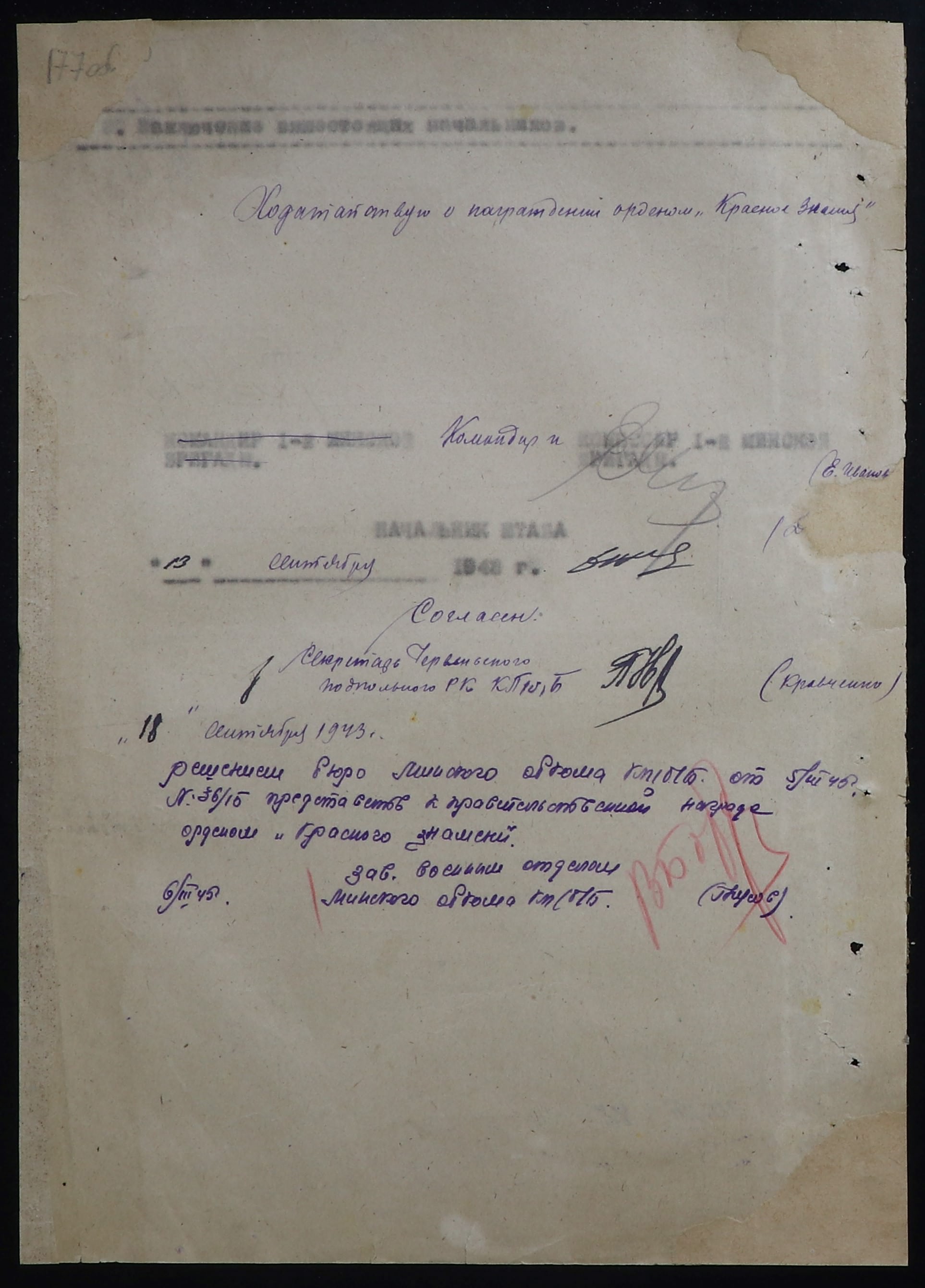 Ордена: " "КРАСНОГО ЗНАМЕНИ" (1948), , "КРАСНОЙ ЗВЕЗДЫ" (1943)