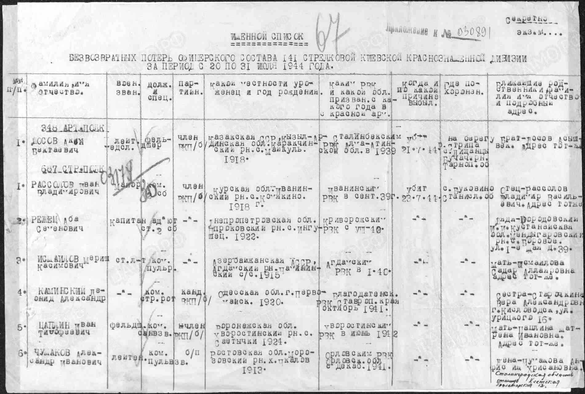Данные из УПК (учётно - послужной карты, портал "ПАМЯТЬ НАРОДА").