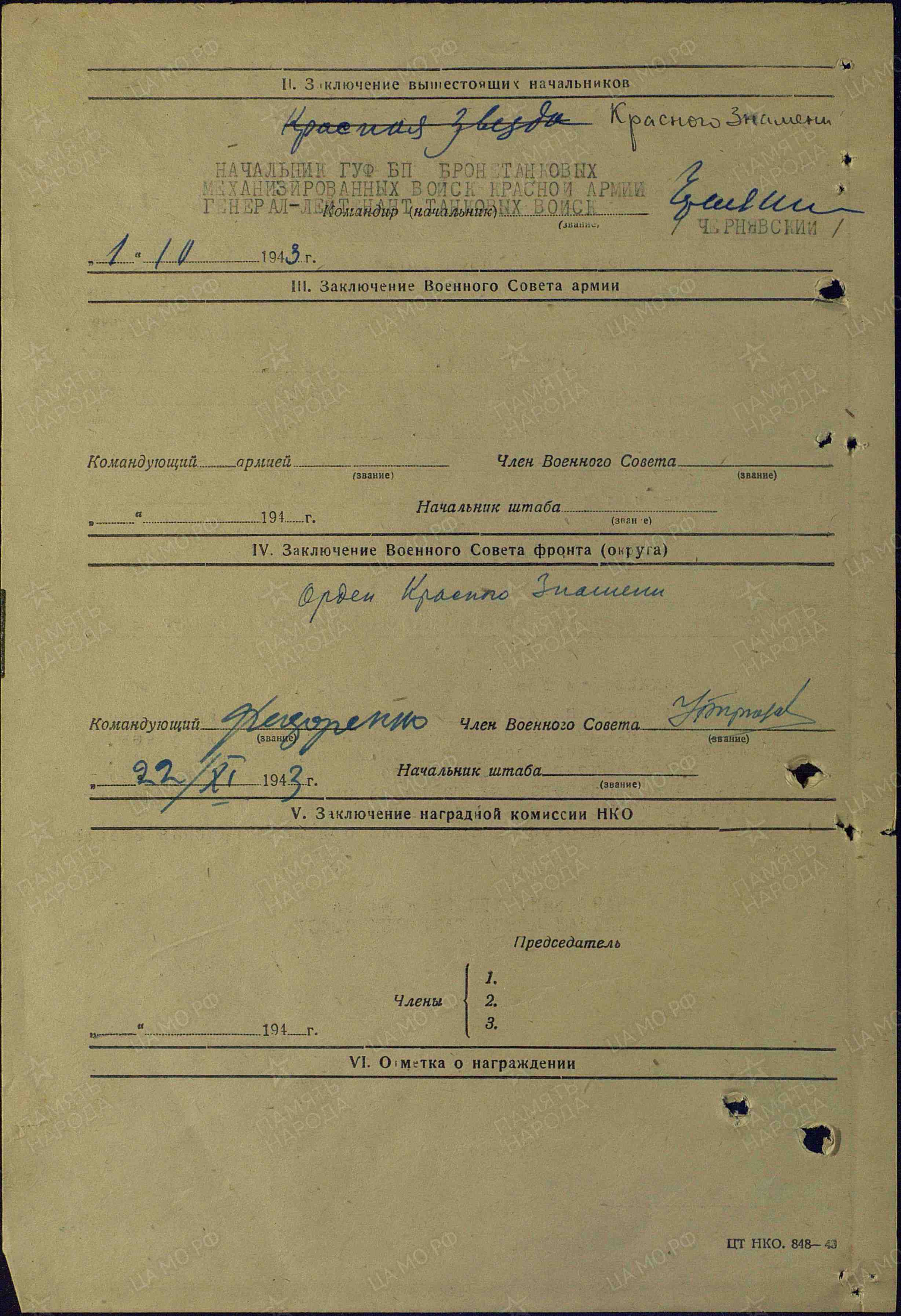 Командир 131-го танкового полка 212-й стрелковой дивизии 15-го механизированного корпуса 1941-1942.