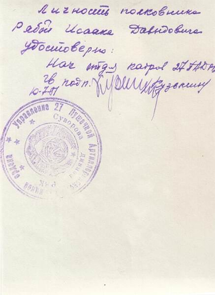 Убедительно прошу, всех располагающих информацией о гвардии полковнике РЯБОМ ИСААКЕ ДАВЫДОВИЧЕ имеющих его фото и фото его семьи, сообщить на адрес электронной почты: genn53@list.ru