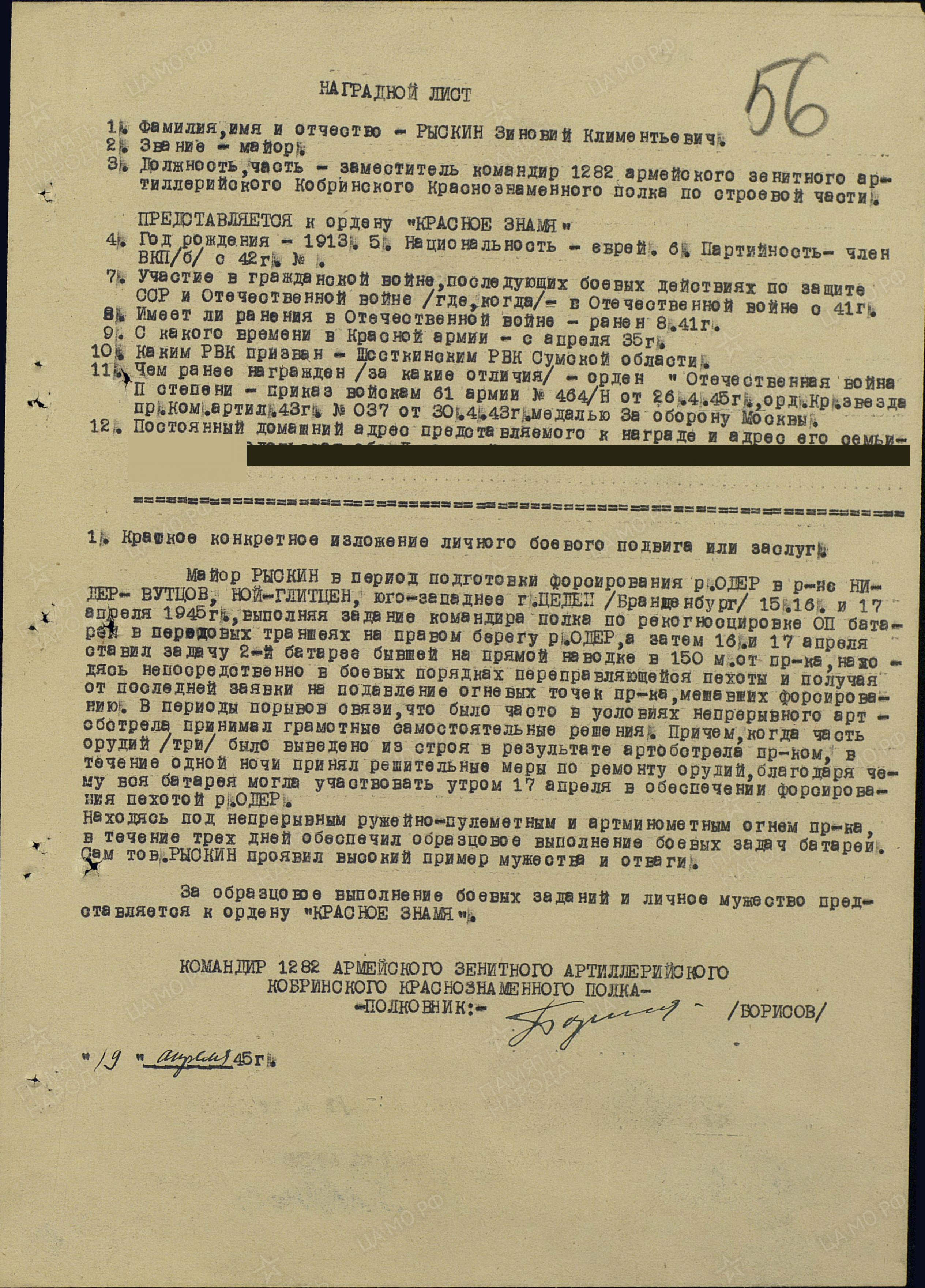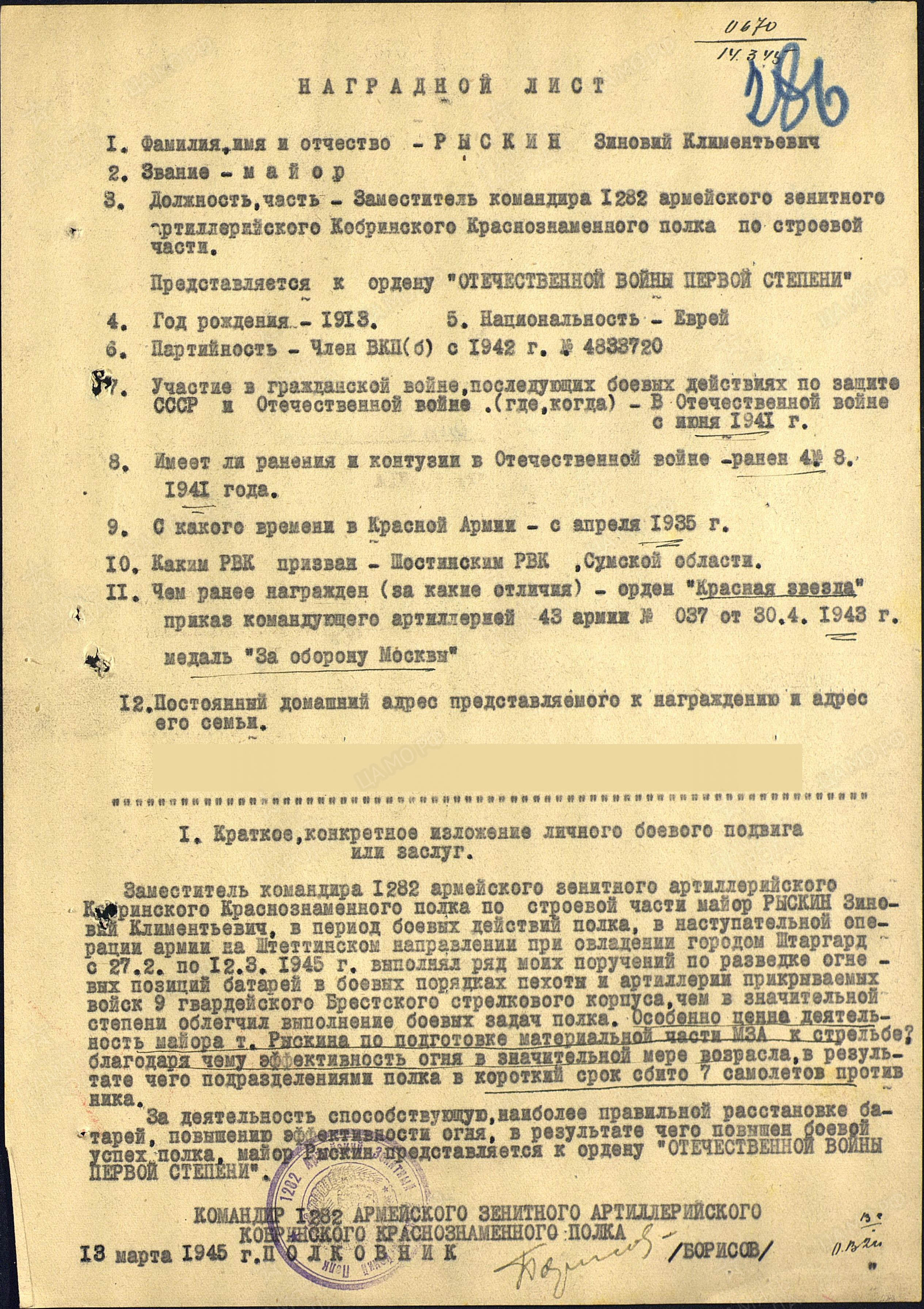 заместитель командира 1282 армейского зенитного артиллерийского Кобринского Краснознаменного полка по строевой части