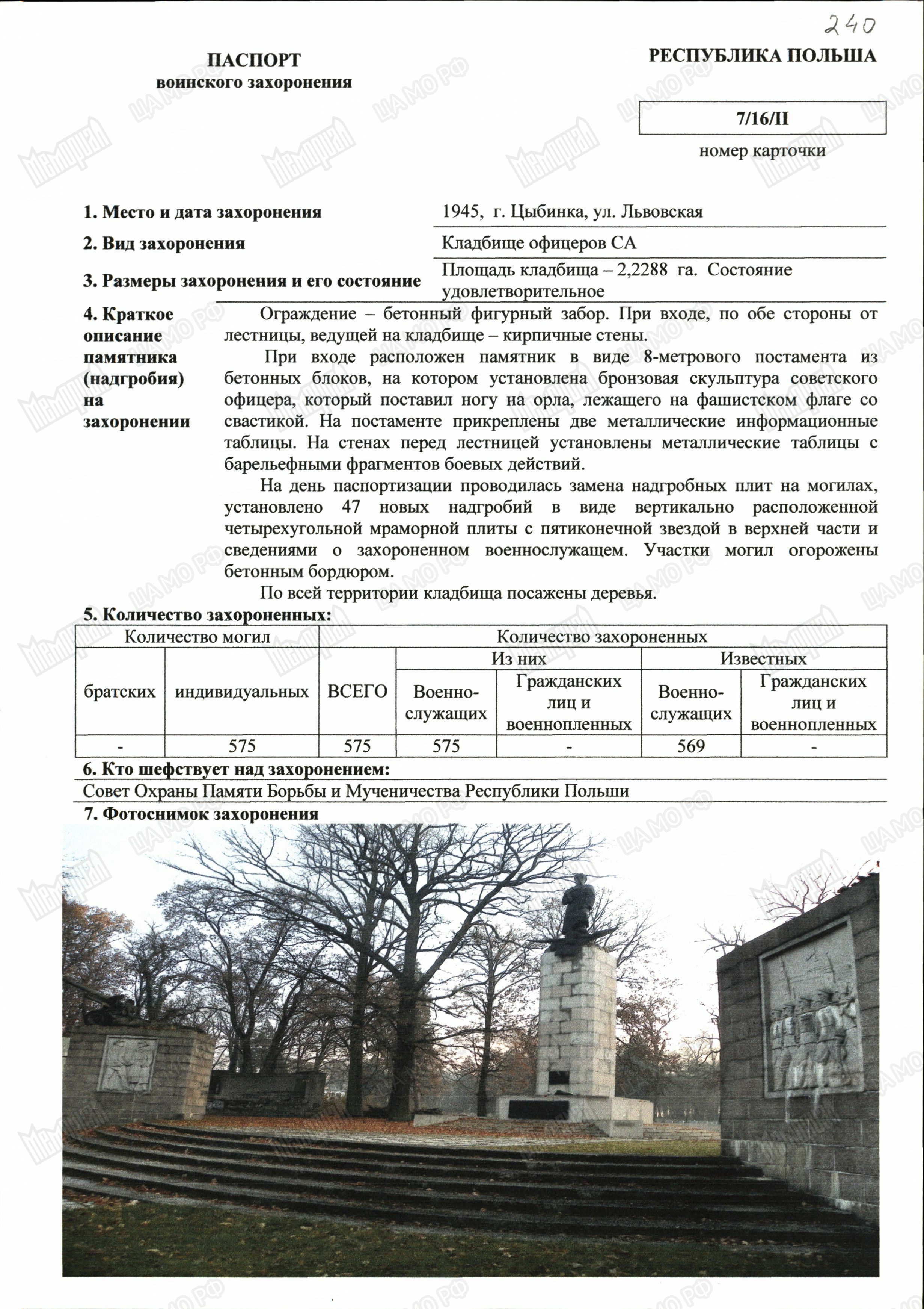 4. Номер захоронения в ВМЦ: З48-229; З48-240; ЗПКК-31(с ОБД "МЕМОЛРИАЛ")