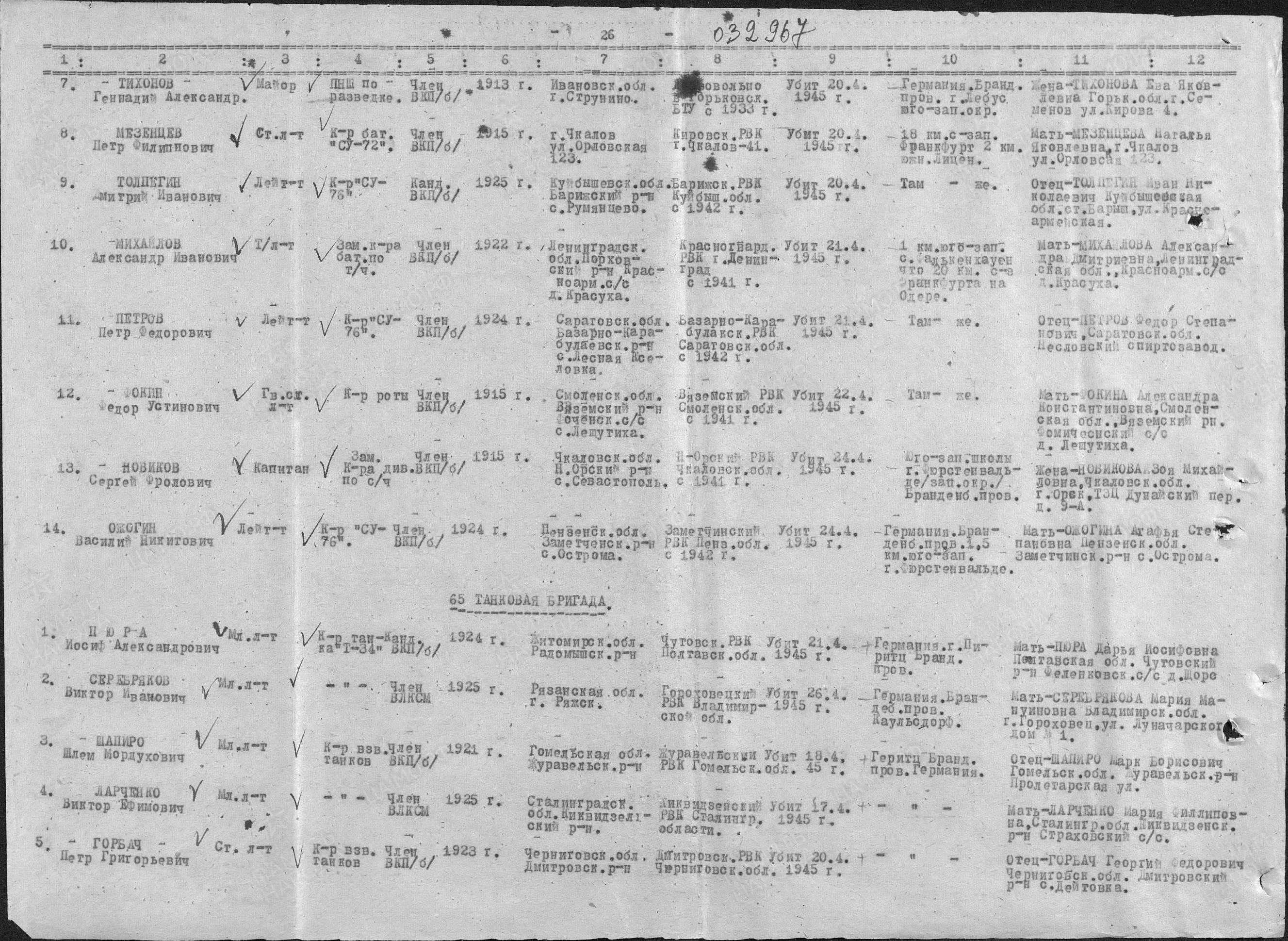 6. История и боевой путь 65 танковой Волновахской Краснознамённой орденов Суворова 2 степени и Кутузова 2 степени бригады(http://tankfront.ru/ussr/tbr/tbr065.html ).