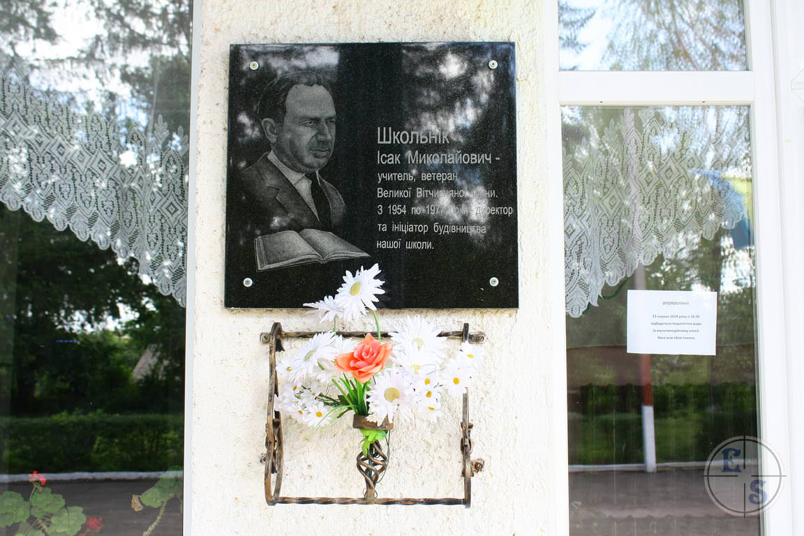 Мемориальная доска, на стене средней школы, в память Учителя ШКОЛЬНИКА И. Н.;
