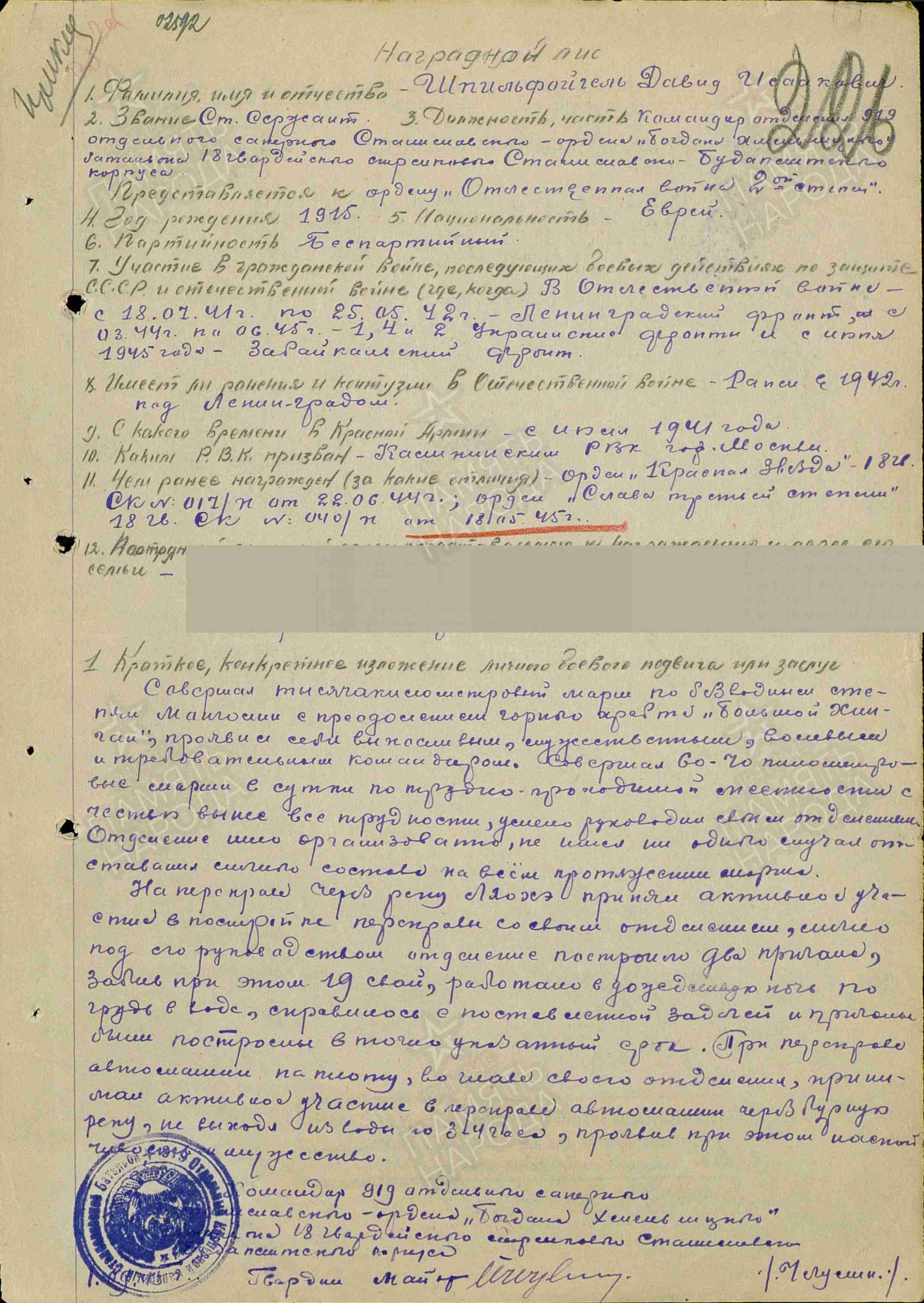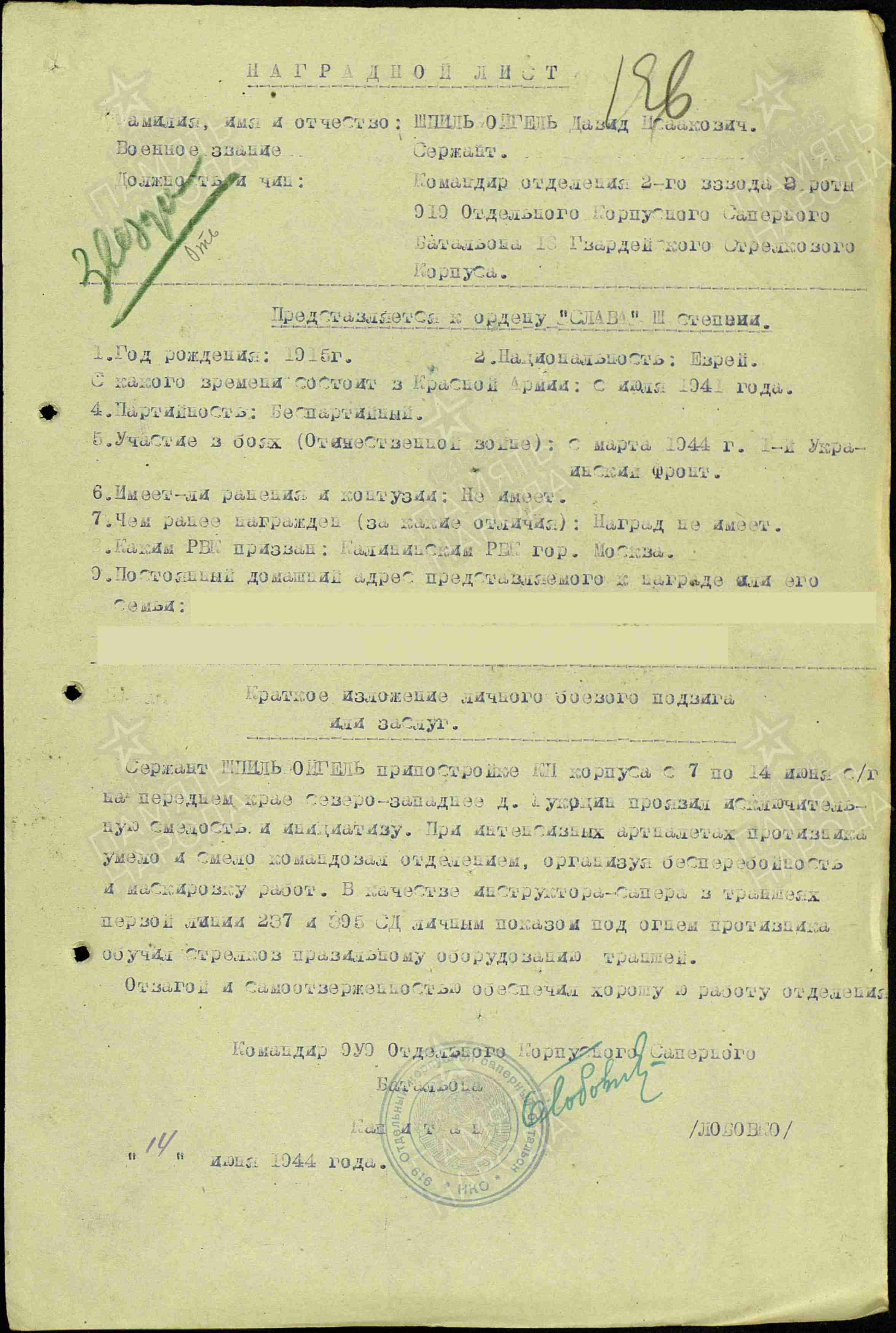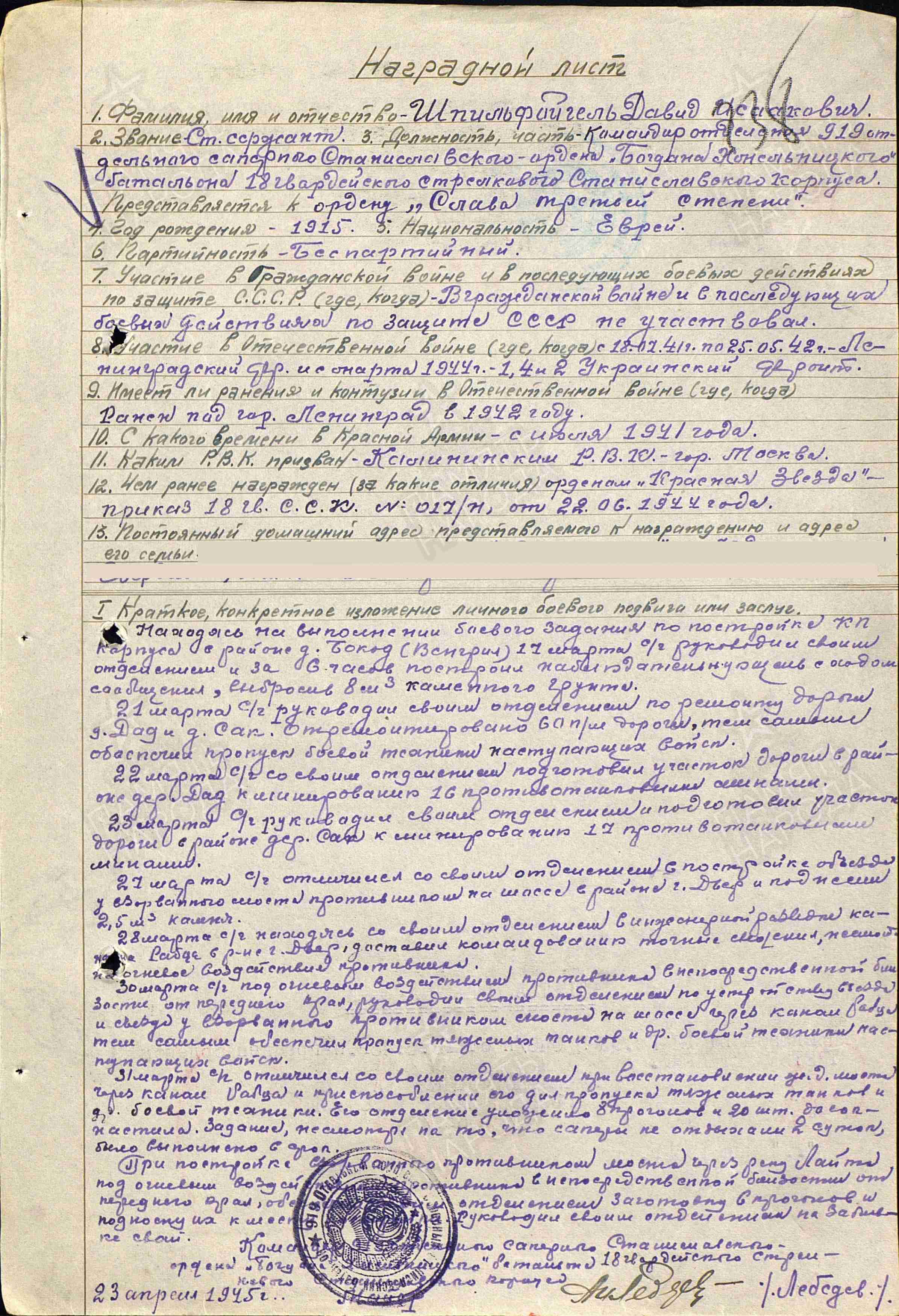 ЛИЧНАЯ СТРАНИЦА на ст. сержанта Шпильфойгеля Д.И. :