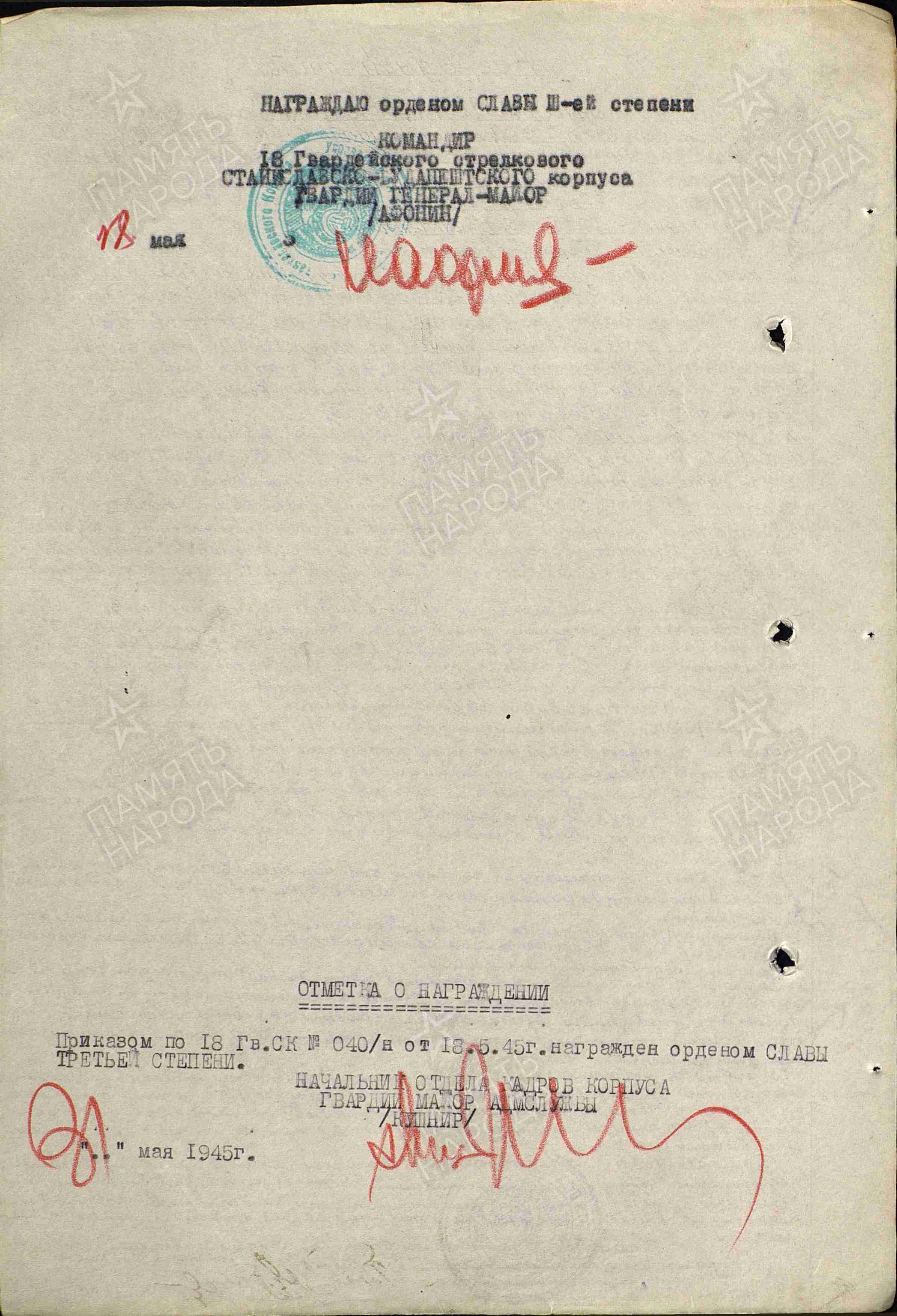 Командир отделения 919-го отдельного корпусного саперного Станиславского ордена Богдана Хмельницкого батальона 18-го гвардейского стрелкового корпуса