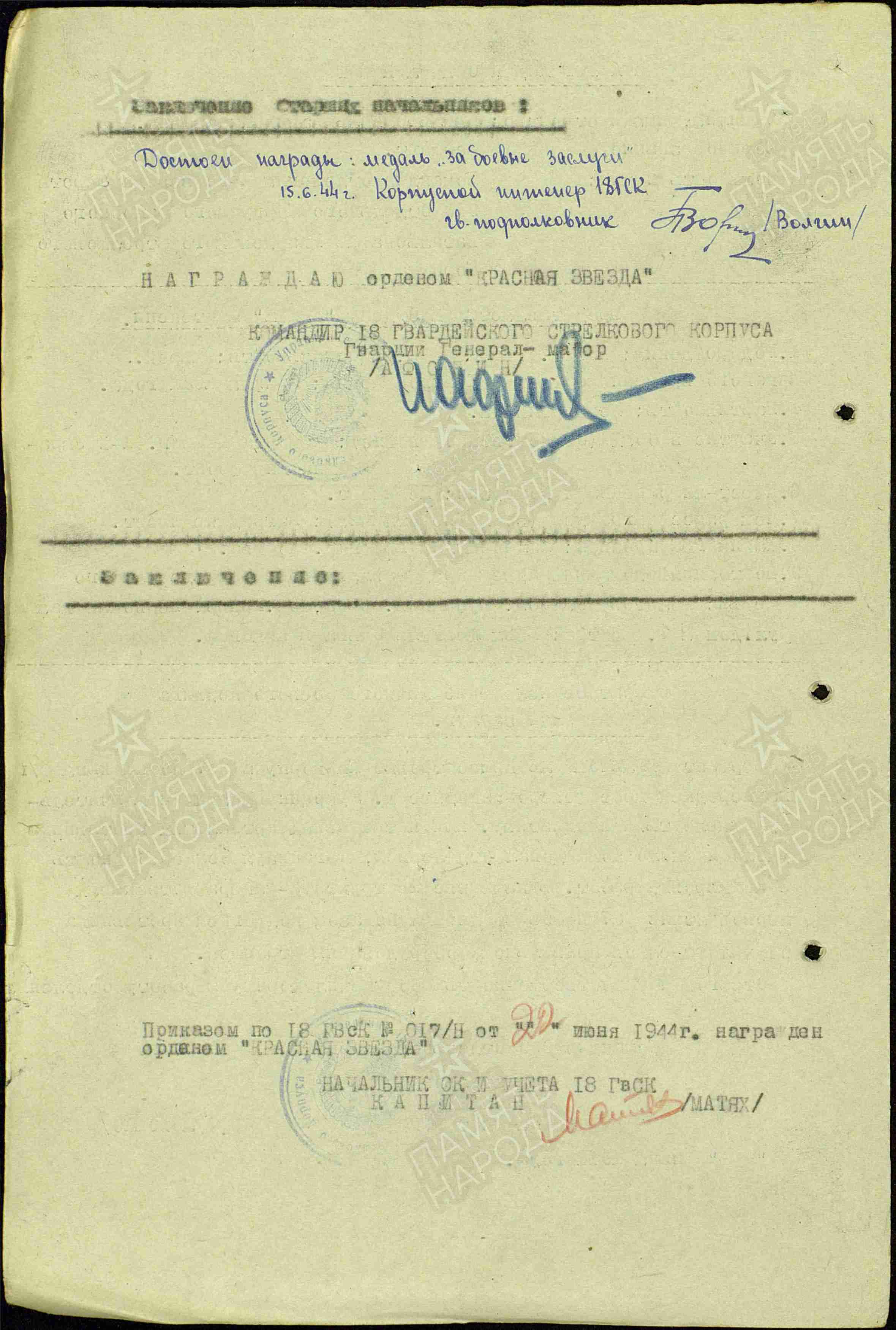 Призван в Красную Армию Калининским РВК города Москвы 24.6.1941.