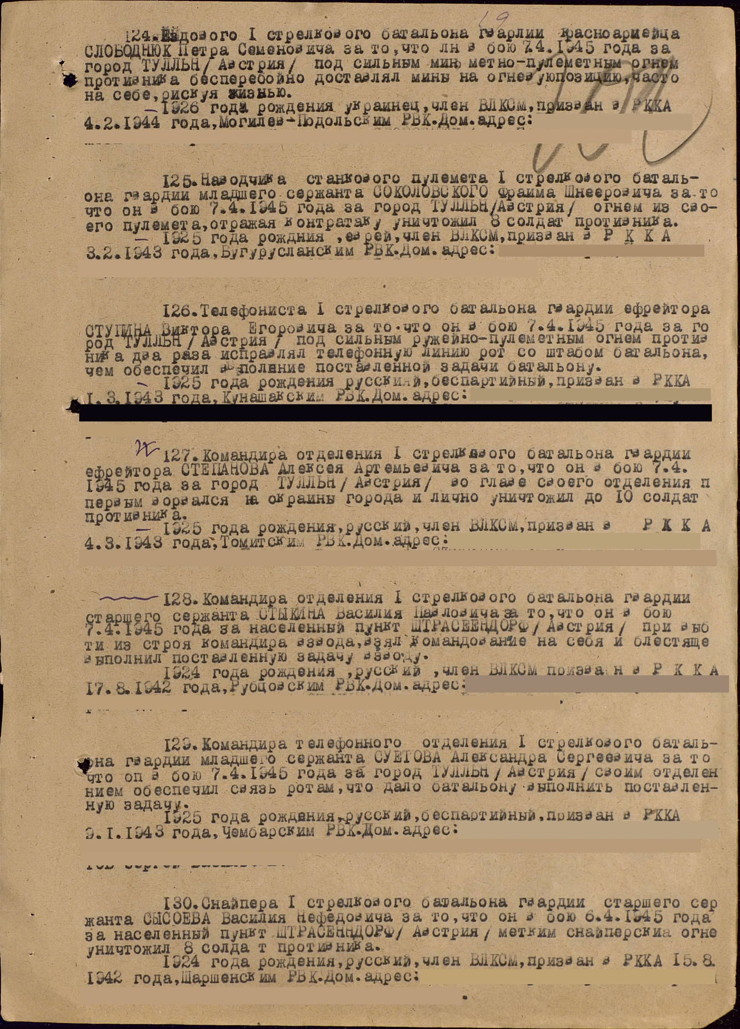 Из наградного листа на присвоение звания Героя Советского Союза: