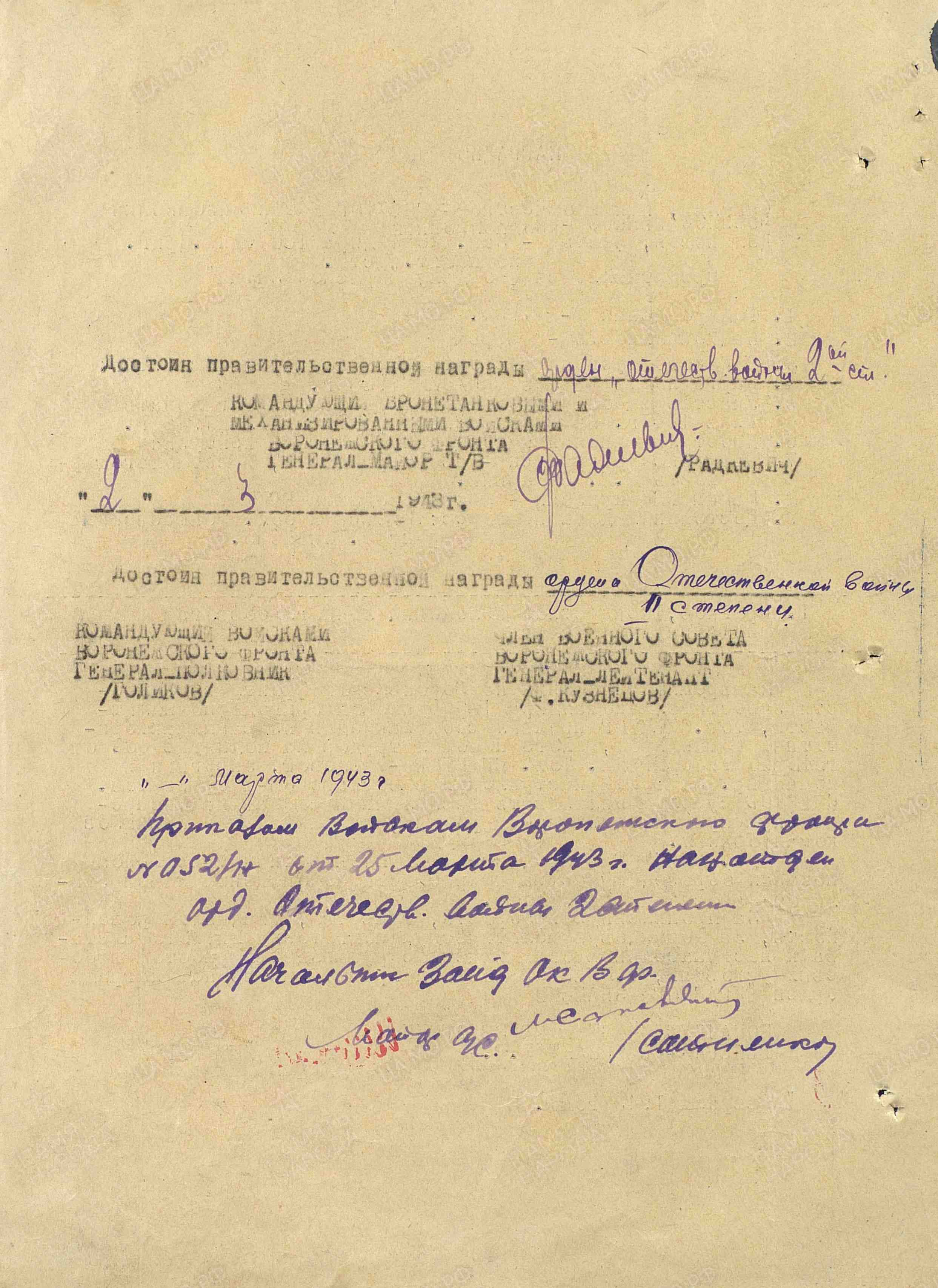 | 25.03.1943 | Орден Отечественной войны II степени |