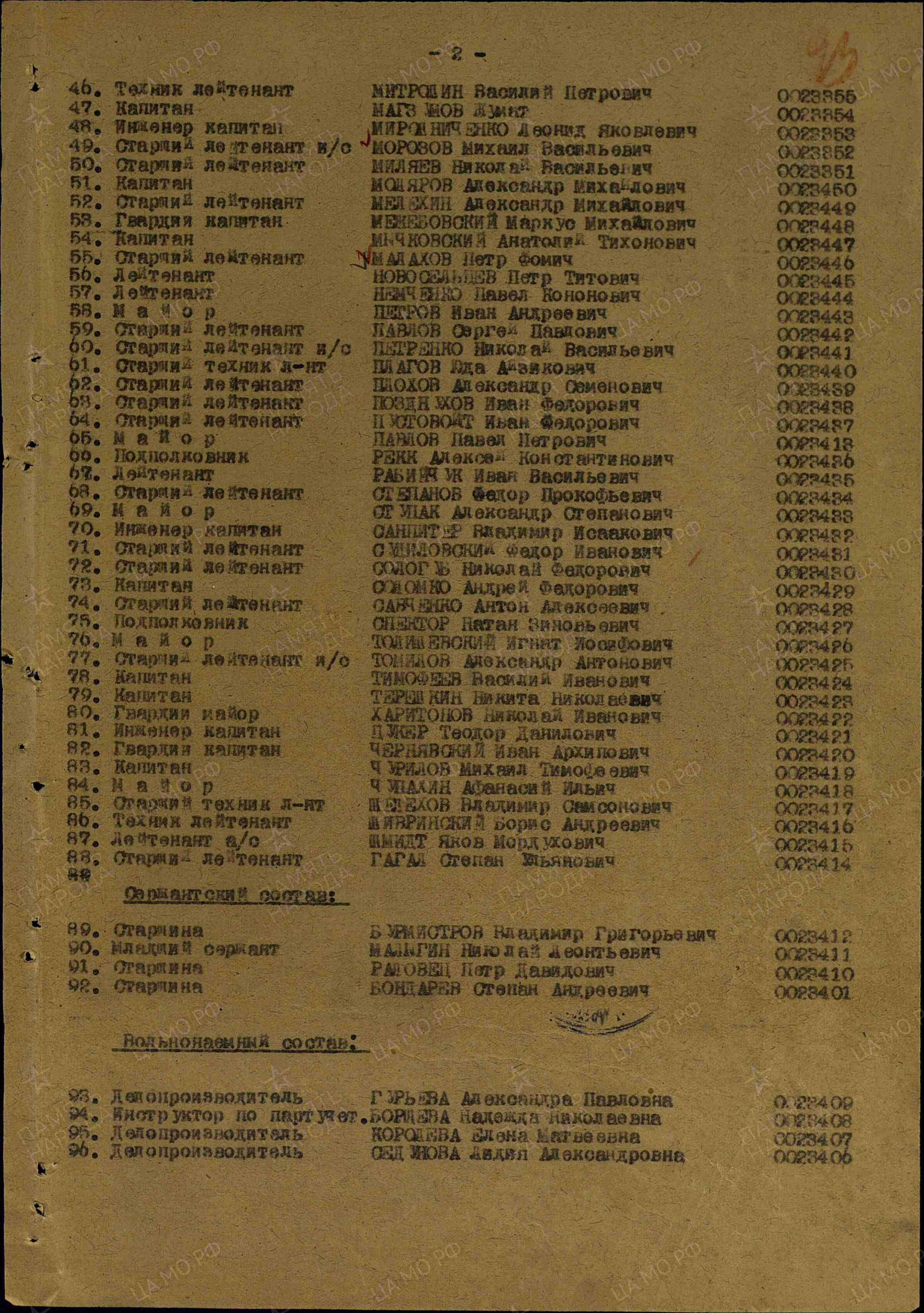 Подполковник. __.__.1904 Украинская ССР, Киевская обл., с. Семеновка. Сводная картотека