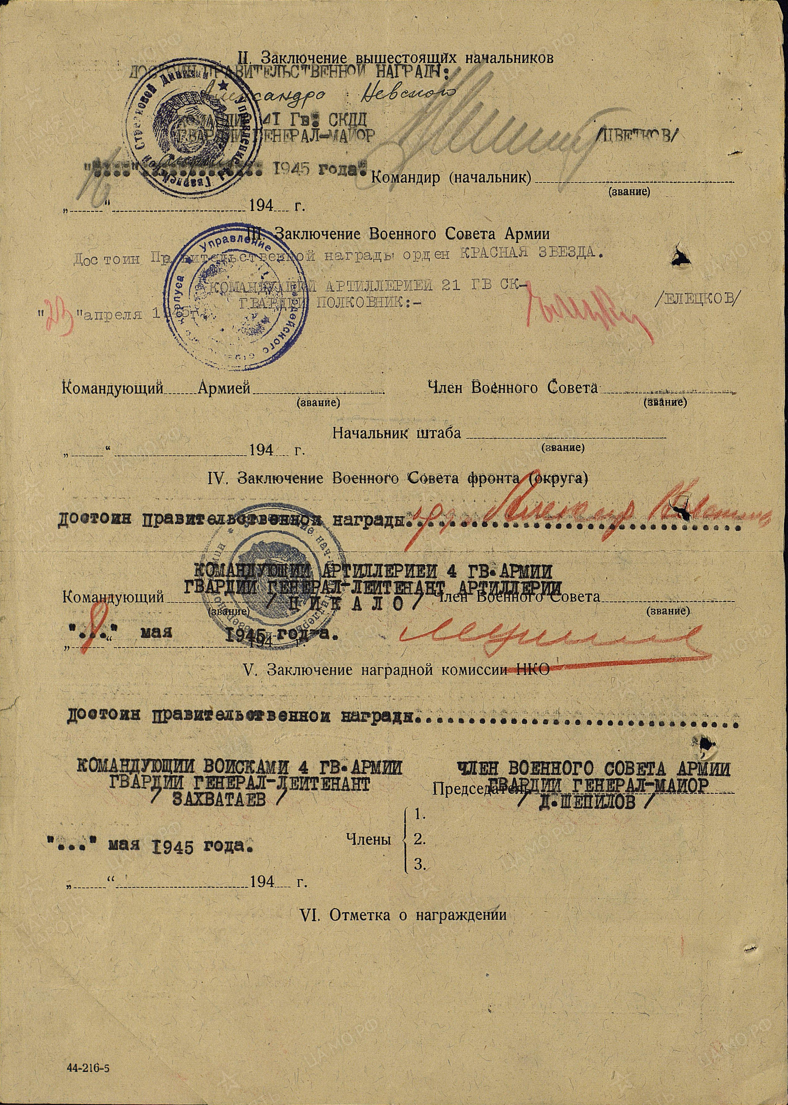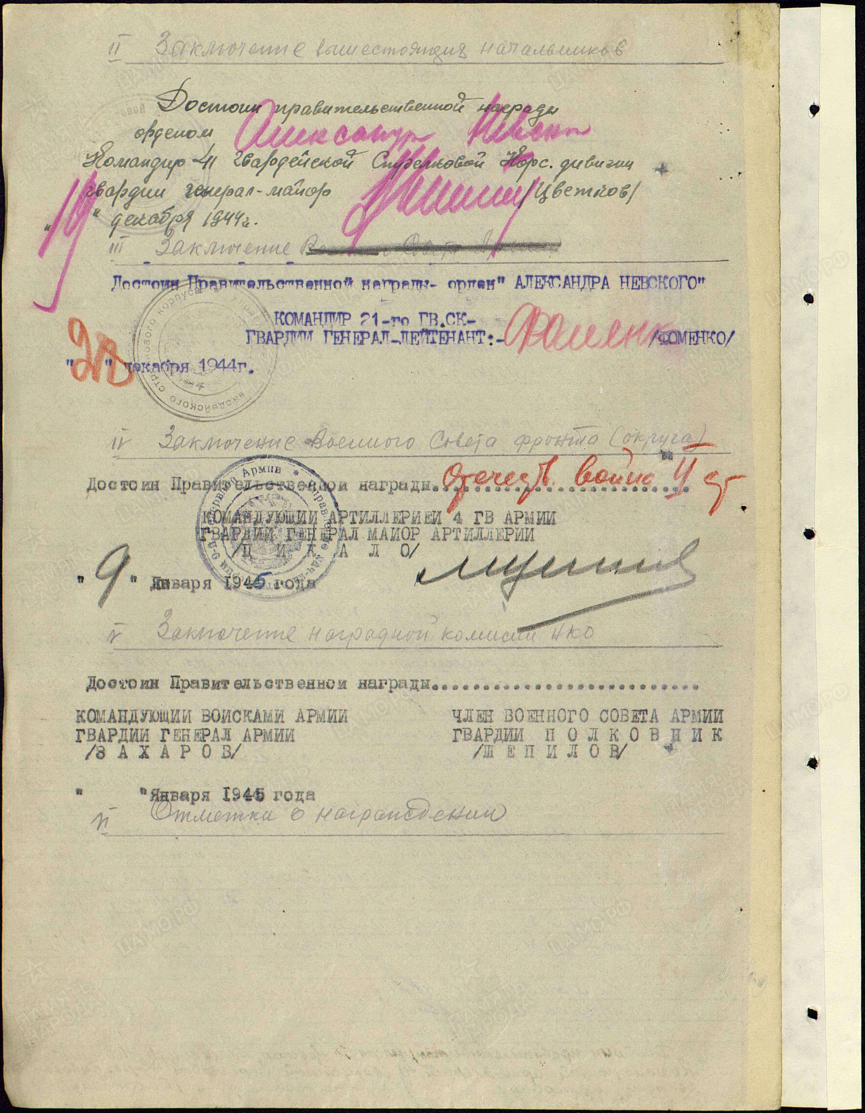 противника. Достоин правительственной награды орденом «Александр Невский».