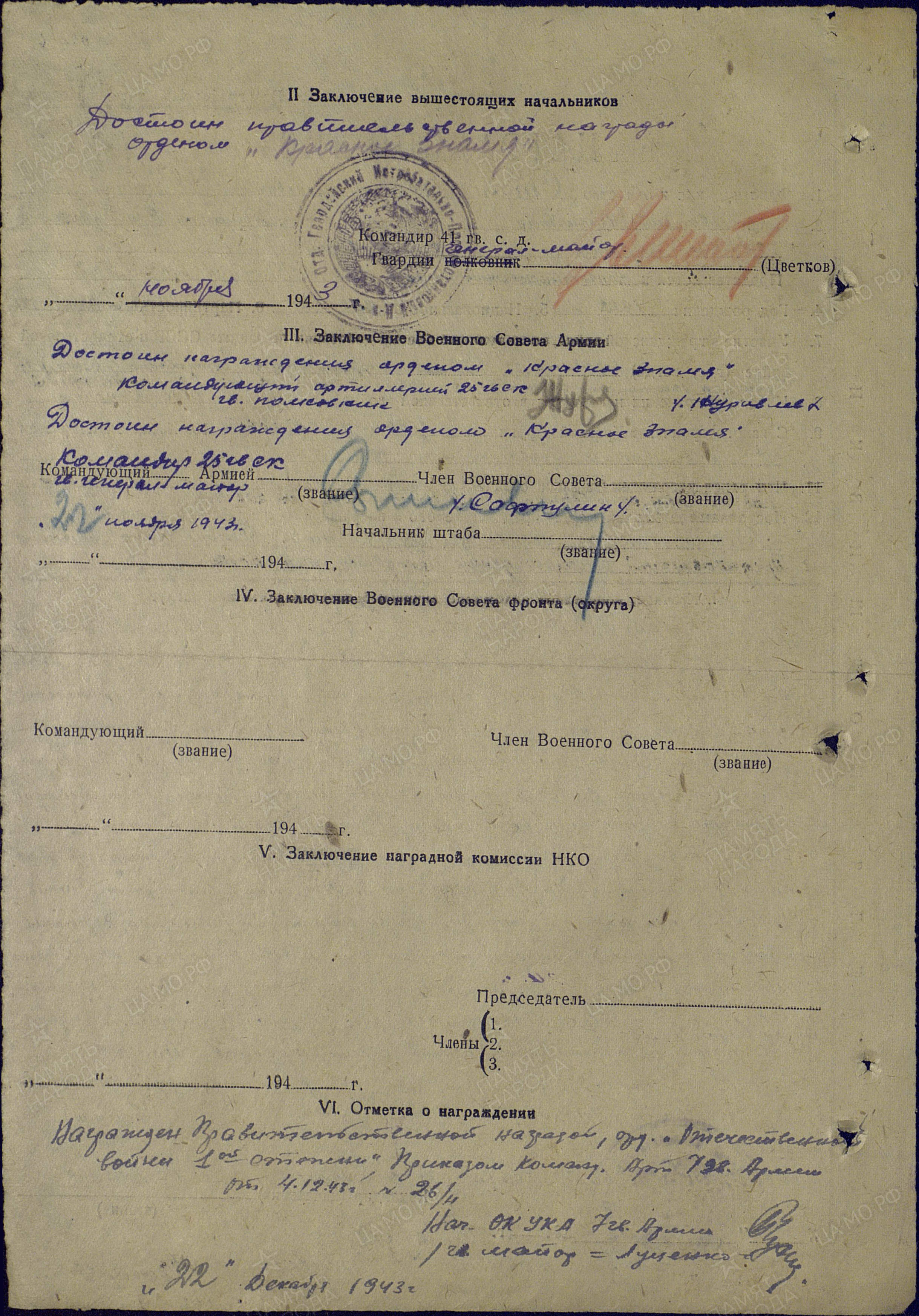 приказом командующего арт. 798 Армии от 04.12.1943 №26