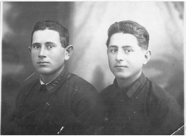 "Братья Тарасюки: Сруль Аронович (слева), Пульчик Аронович (1913 - 1941).";