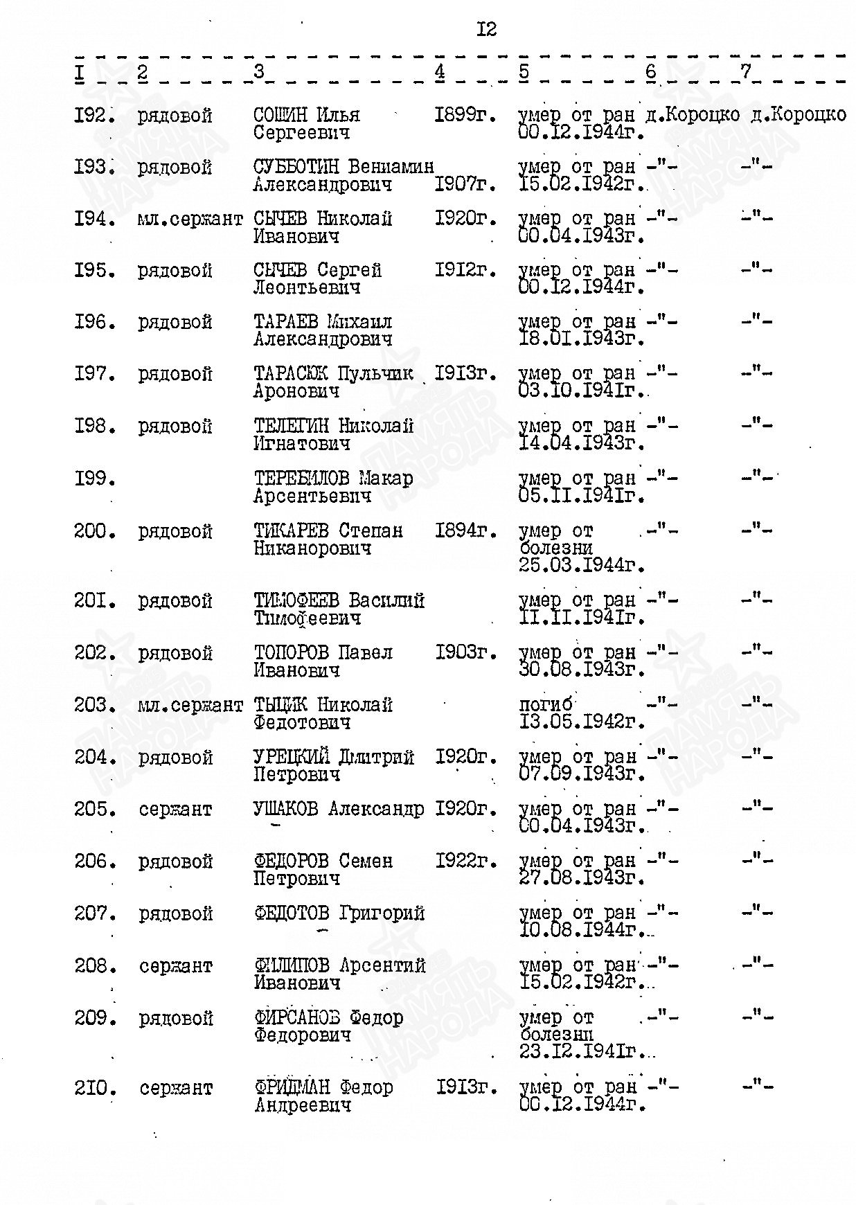ЛИЧНАЯ СТРАНИЦА на рядового ТАРАСЮКА П. А.: