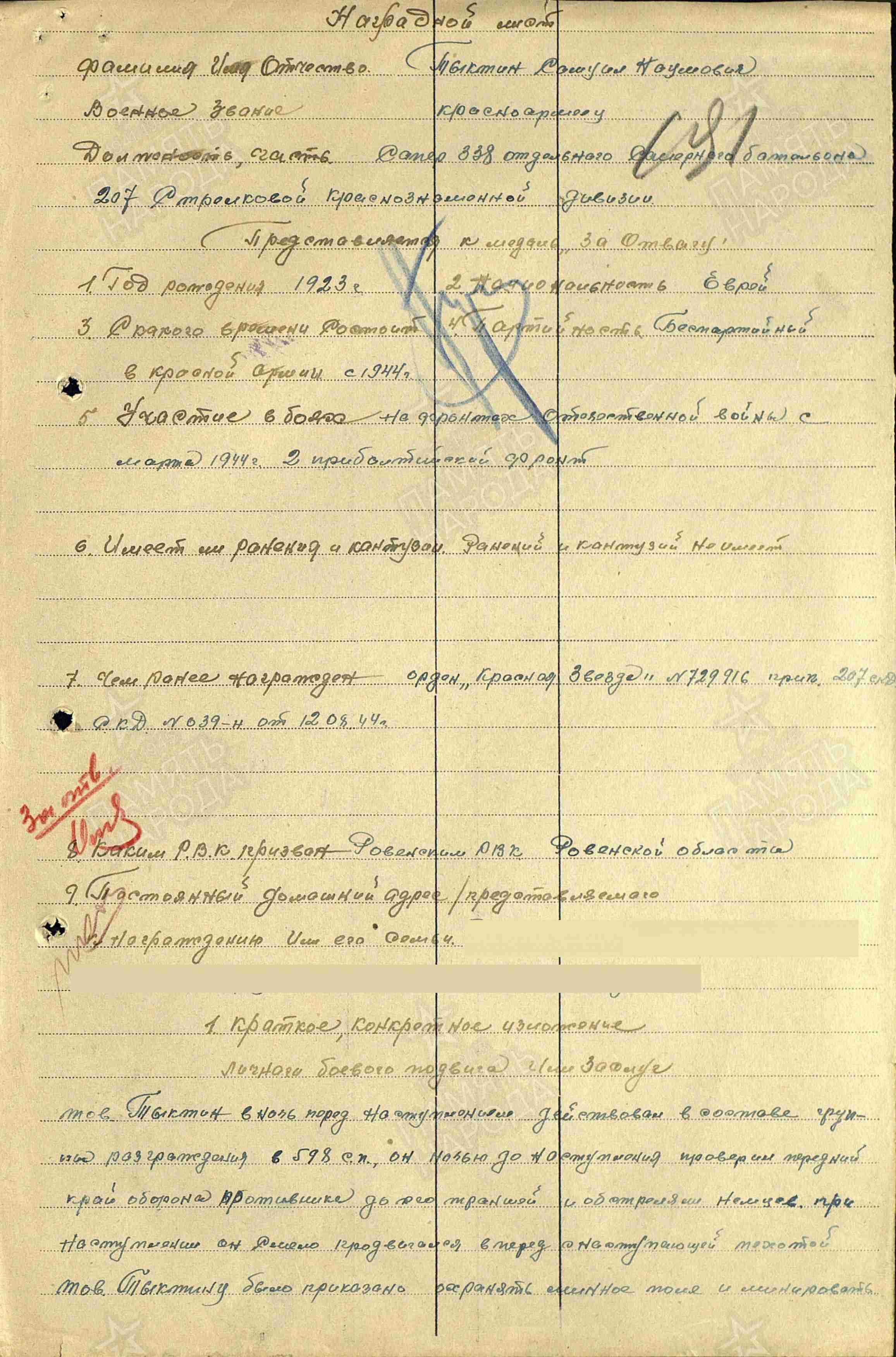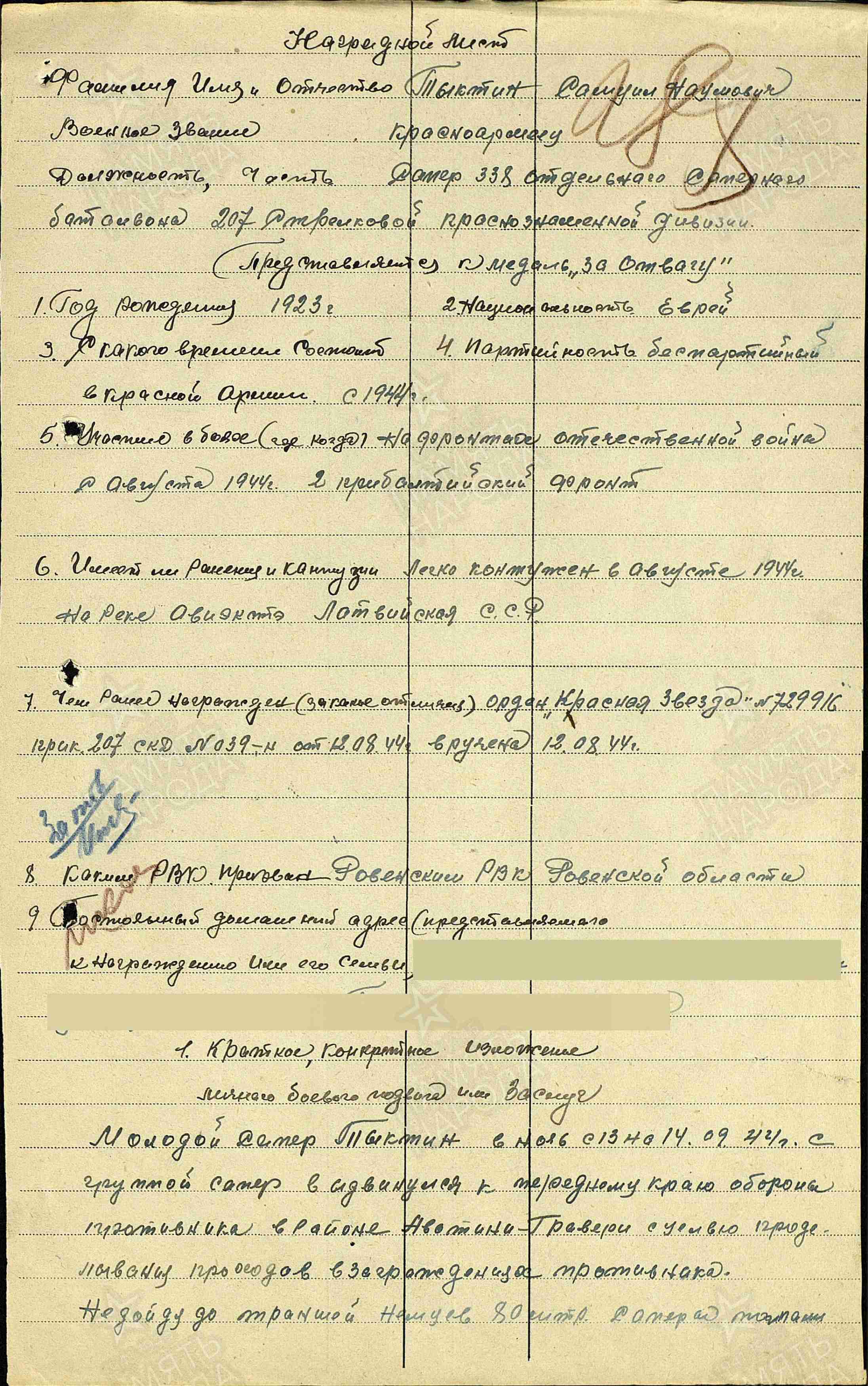12.08.1944 Орден Красной Звезды