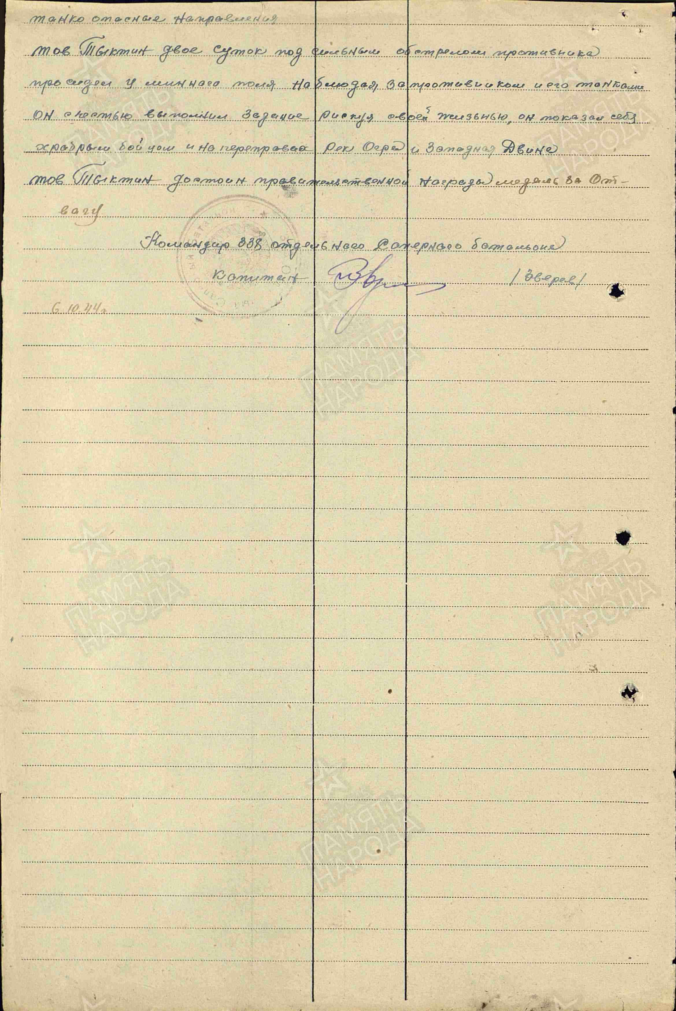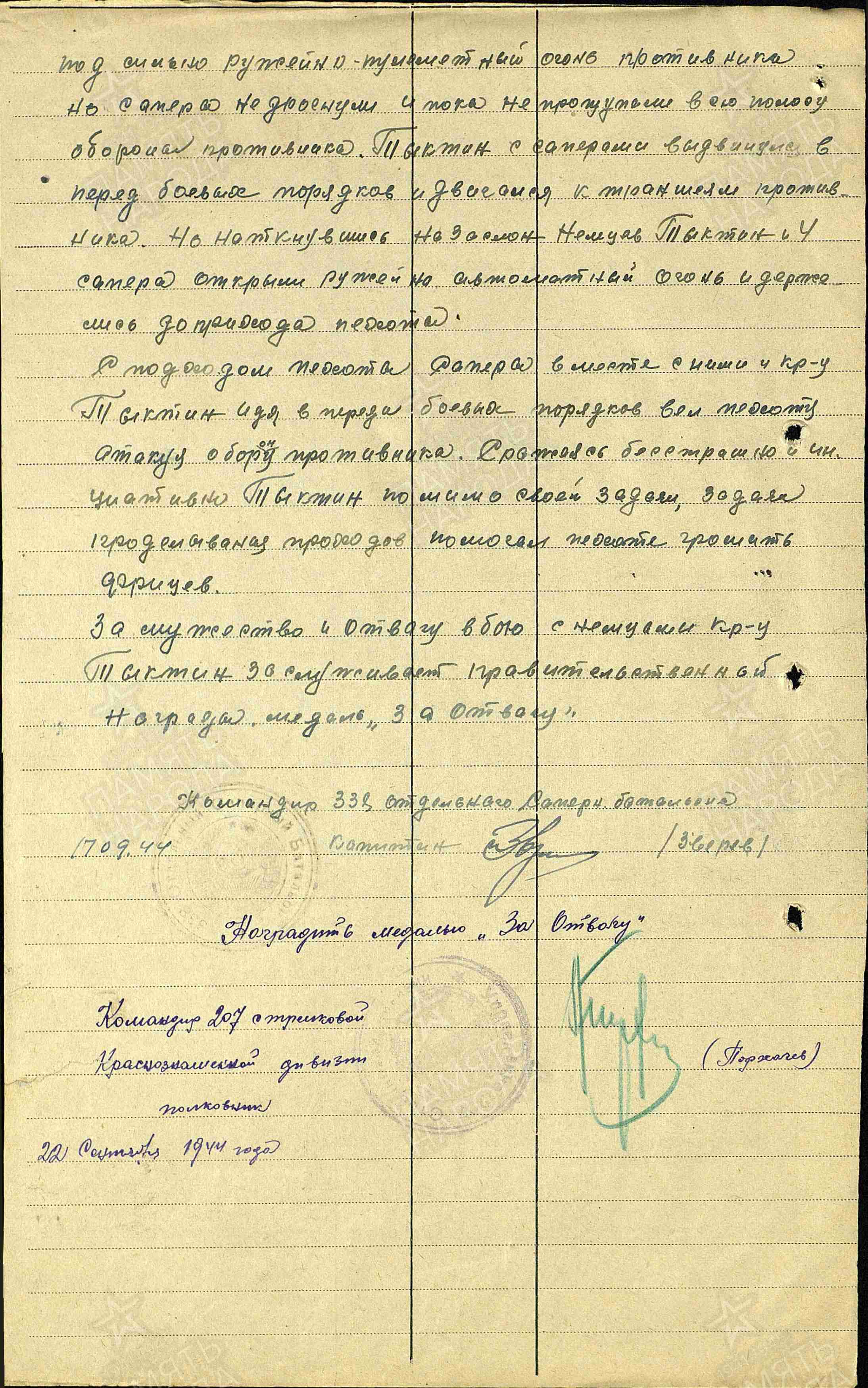 11.10.1944 Медаль «За отвагу»